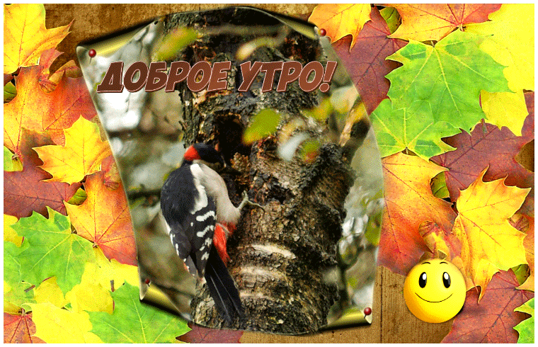Категория: Доброе Утро | Добавил: inetik | Теги: дерево, дятел, открытка, Анимация, gif, осень, Листья, утро, смайлик