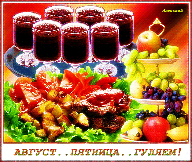 БЛАГОДАРЮ ОТ ВСЕЙ МОЕЙ ДУШИ ГАЛОЧКА!! СЕГОДНЯ ПРЕДПОСЛЕДНЯЯ ПЯТНИЦА ЛЕТА, НЕМНОЖКО ЕЁ ОТМЕТИМ, ПО РЮМОЧКЕ ВИШНЕВОГО СОКА ВЫПЬЕМ И ШАШЛЫШКИ ПОКУШАЕМ!!!) ПРИГЛАШАЮ МИЛАЯ СЕСТРЁНОЧКА К КРАСОЧНОМУ СТОЛУ!!