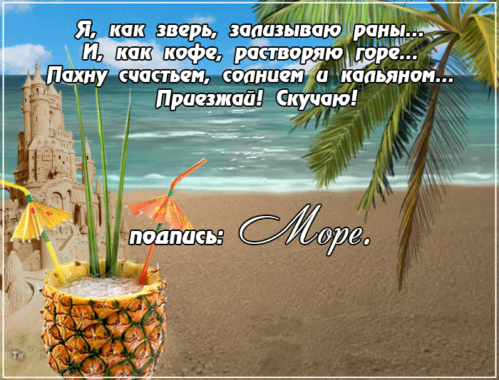 Приезжай! Скучаю! Подпись: МОРЕ.