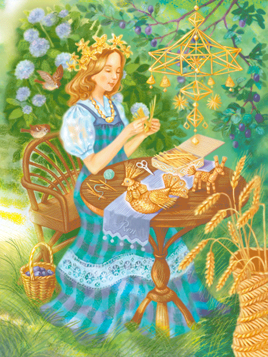 Категория: Лето | Добавил: Ren | Теги: русские народные промыслы, Анимация Любови Ивановой (Ren), gif поделки из соломки, лето., девушка, Русь