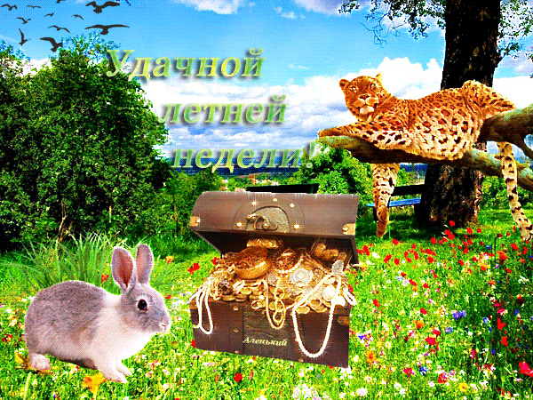 Категория: Лето | Добавил: Аленький | Теги: открытка, Аленький, гиф, кролик, Анимация, сундук, леопард