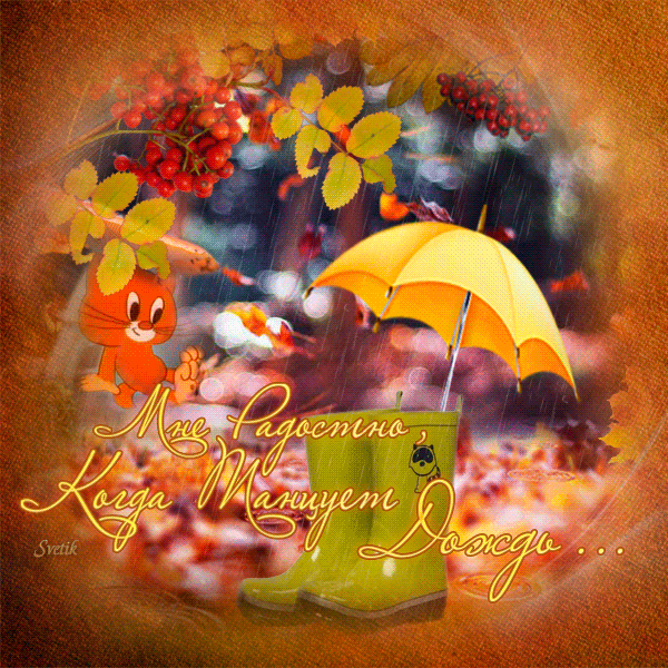 Категория: Осень | Добавил: svetlanka53 | Теги: gif animated, осенний дождик, animation, осень, друзьям, пожелание, хорошее настроение, открытка, gif анимация, gif, картинка, авторская анимация, листва