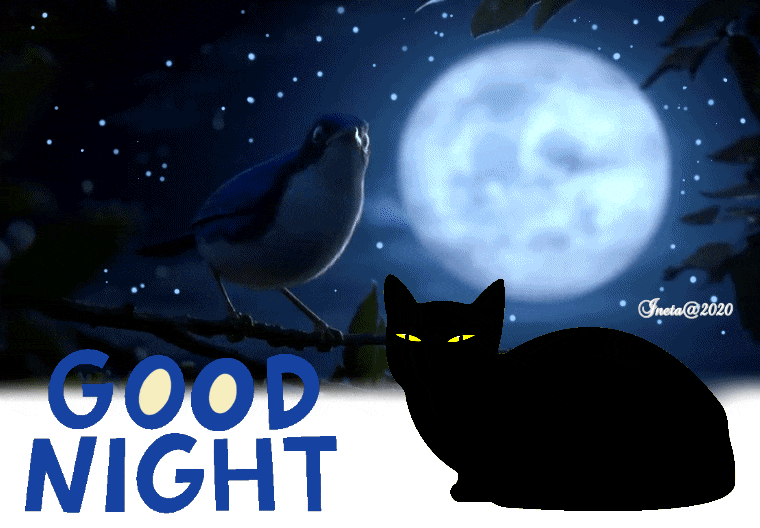 Категория: Доброй Ночи | Добавил: inetik | Теги: птица, небо, gif, Ночь, открытка, природа, Анимация, кот, луна