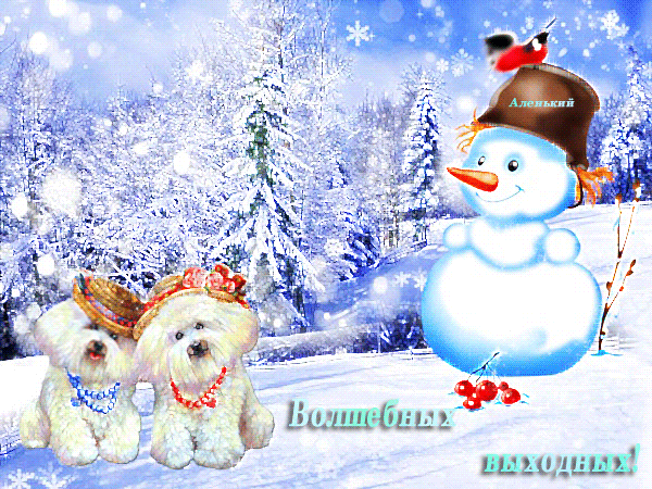 Категория: Зима | Добавил: Аленький | Теги: открытка, Анимация, снеговик, Аленький, гиф, собачки