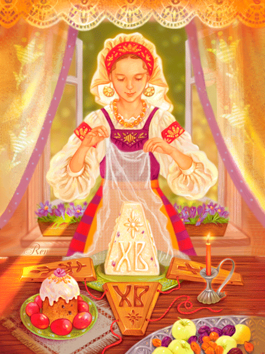 Категория: Пасха | Добавил: Ren | Теги: gif весна, Кулич, яйца, девушка, Анимация Любови Ивановой (Ren), Творожная пасха, Пасха